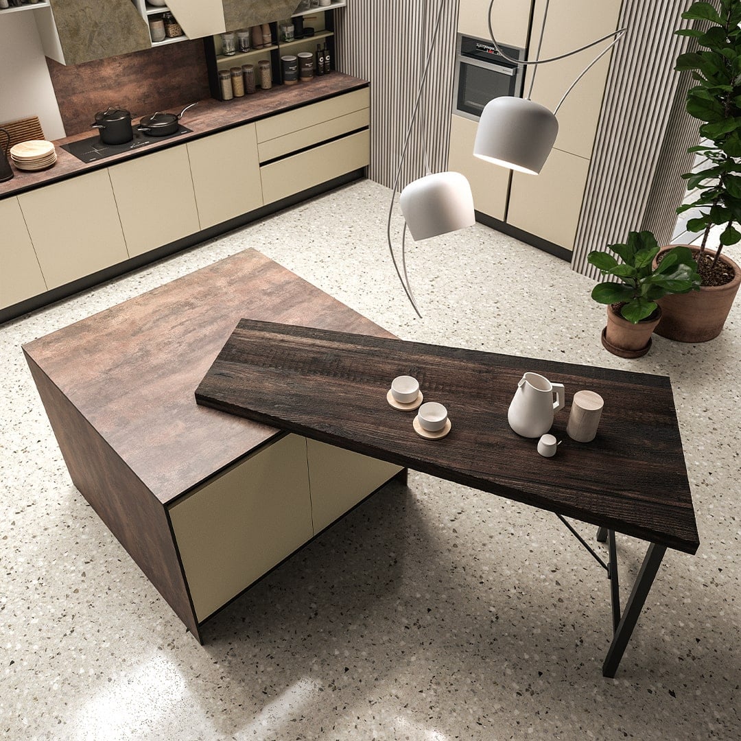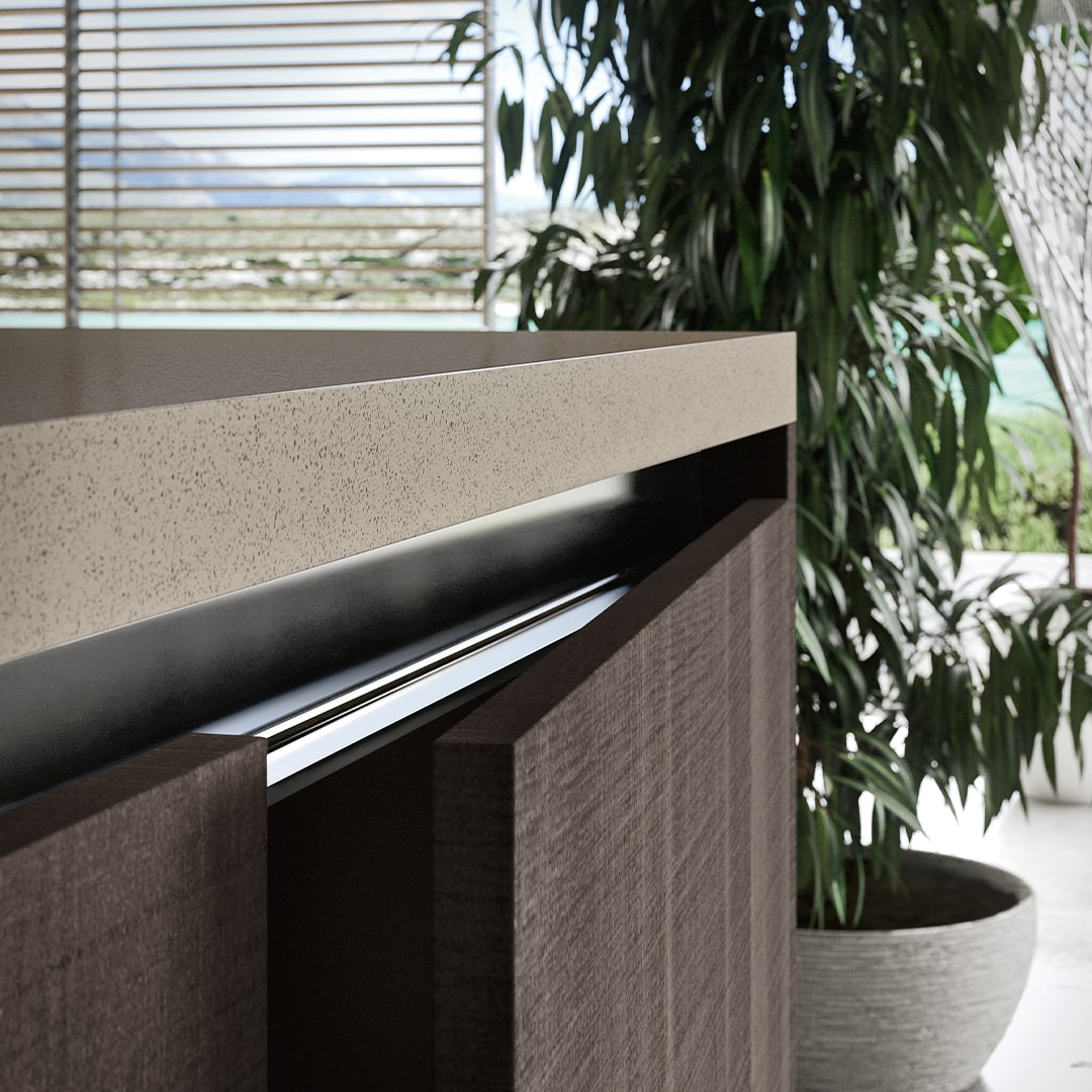 MIA ofera o gama foarte larga de finisaje si materiale: laminat colorat, finisaje cu efect lemn sau piatra, sticla, suprafete cu efect materic, FENIX NTM®, PET si lacuri mate sau lucioase. Sistemele de deschidere includ maner clasic, canal tip gola sau push-pull, permitand configuratii adaptate oricarui stil, de la minimalist la urban sau eclectic.