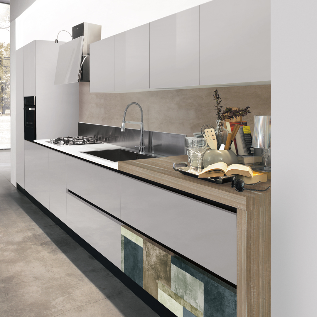 Aceasta flexibilitate permite adaptarea bucatariei la stiluri variate, de la minimalist si riguros, pana la expresiv, decorativ sau cu influente industriale.