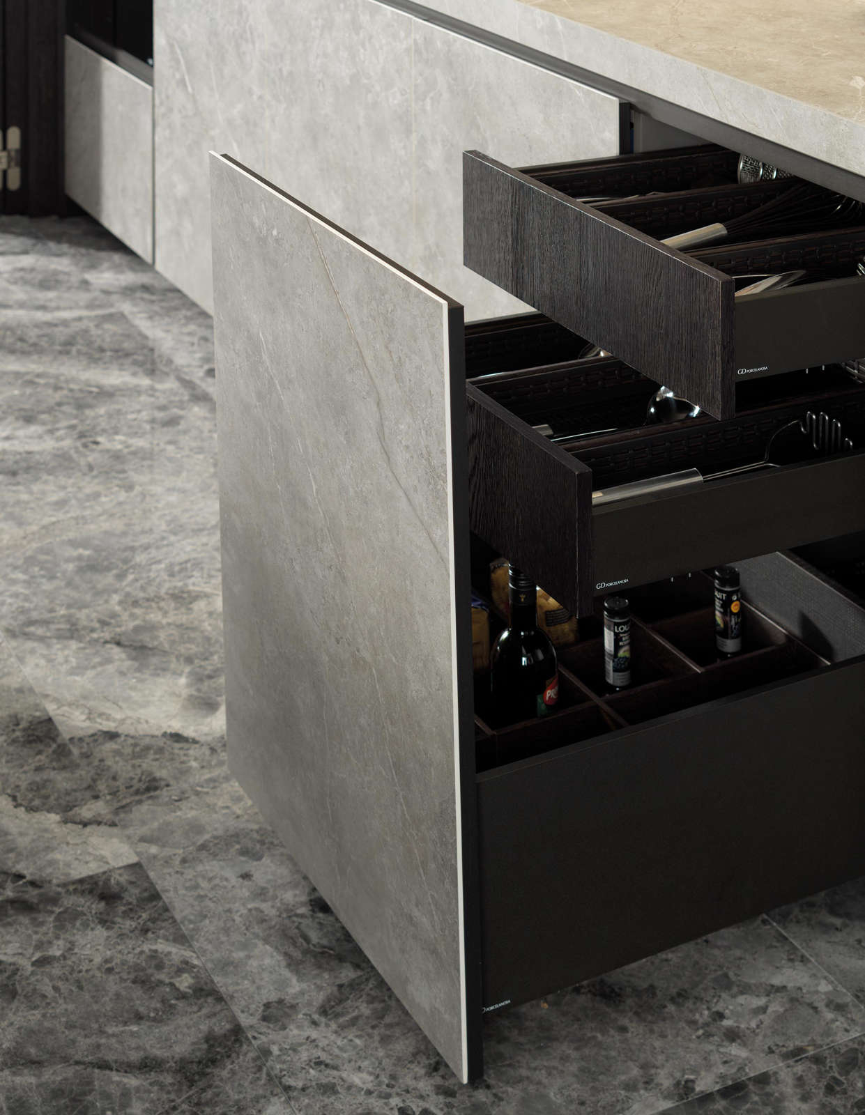 Descopera bucataria Emotions Buffet Forest, realizata in finisajele elegante Xtone Fiori Di Bosco Nature si Night Oak – o fuziune intre naturalete si caldura, conceputa pentru a aduce un plus de rafinament locuintei tale. Sistemul inovator de usi permite mascarea completa a bucatariei, creand aspectul unui perete tip coloane si oferind o estetica ordonata si sofisticata.