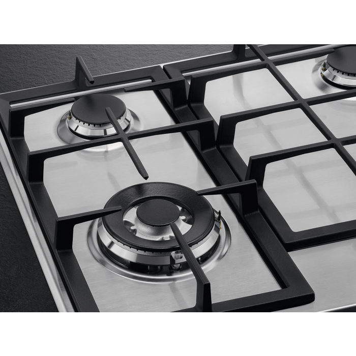 Designul arzătoarelor rapide ale acestei plite pe gaz AEG permite flăcării să intre în contact direct cu fundul vasului, asigurând un foc iute și o eficienţă mărită. Aceste arzătoare gătesc cu 20% mai repede.