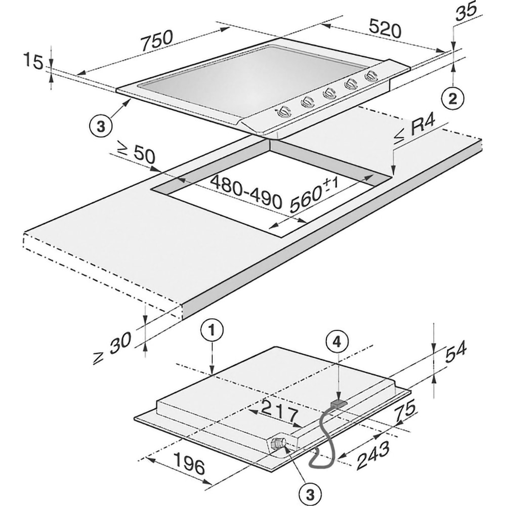 Miele Plita incorporabila, MIELE KM 2034, Gaz, 5 arzatoare, Wok, inox