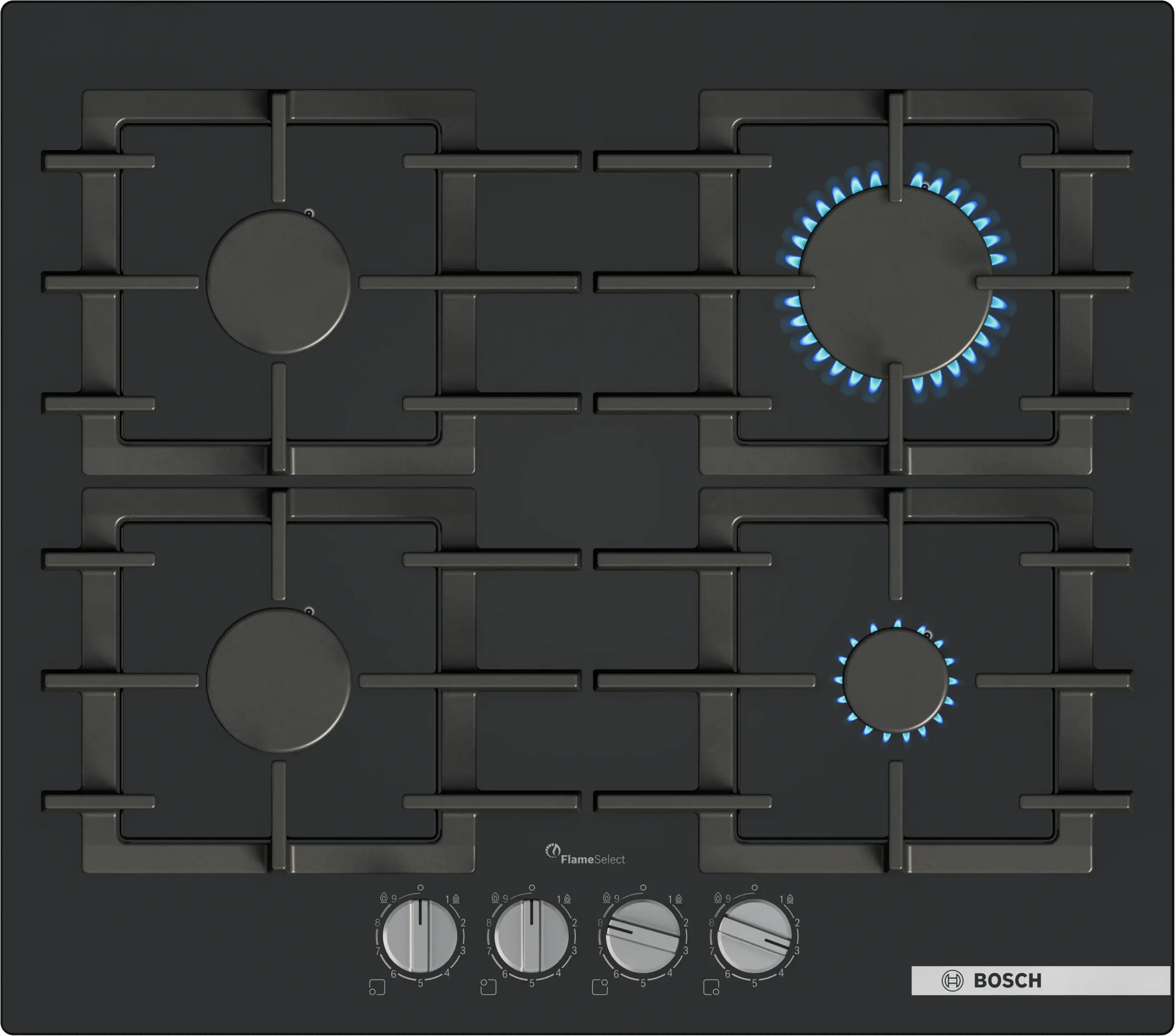 Plita pe gaz Bosch Seria 6 combină designul elegant din sticlă neagră cu performanța precisă oferită de tehnologia FlameSelect. Cu 4 arzătoare, 9 trepte de putere și suporturi din fontă, oferă control optim, siguranță și curățare ușoară pentru utilizare zilnică.