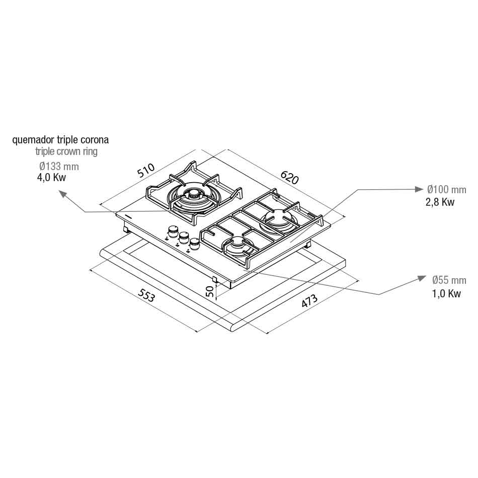 Pando Plită pe gaz pando PGA-4261 620 x 510 mm, 3 ochiuri
