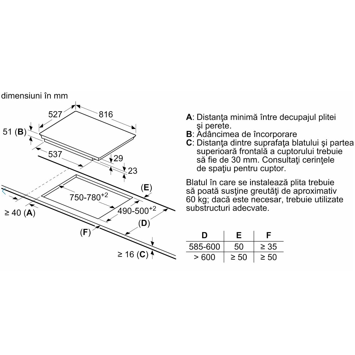 | Dimensiuni nișă (IxLxA) | 51 x 750-780 x 490-500 mm |