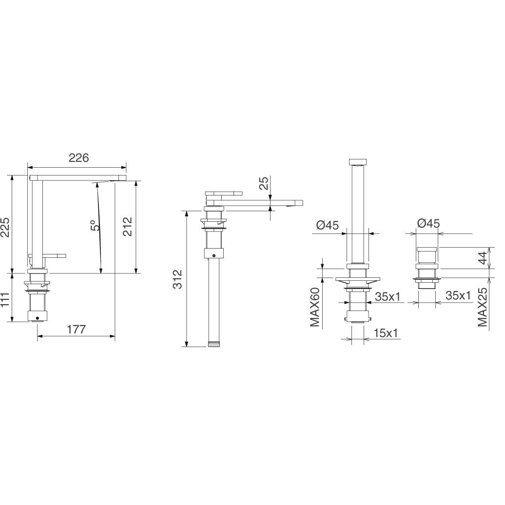 -baterie de bucatarie telescopica CookingAid Box QS3000 care are doua componente separate: corpul bateriei si manerul de actionare a apei, cele doua gauri de 35mm necesare montarii acestora fiind deja predefinite din fabrica de producatorul chiuvetei.