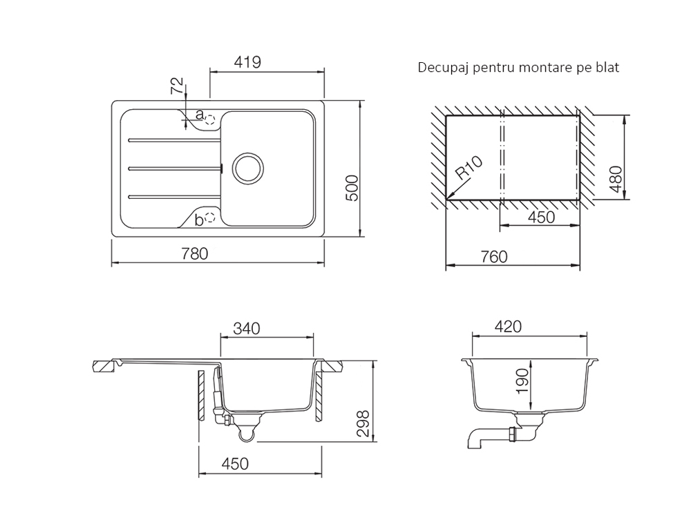 | Inclus in pachet de livrare | Garnitura de scurgere, ventil cos, sifon si cleme |