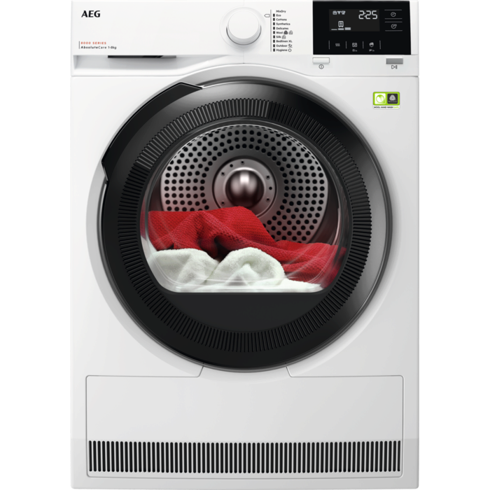 Uscătorul de rufe AbsoluteCare® 8000 utilizează tehnologia cu pompă de căldură. Controlează mișcarea și temperatura tamburului, astfel încât articolele din lâna nu intră la apă, iar cele din mătase nu-și pierd forma. AbsoluteCare® restabilește impermeabilitatea hainelor de exterior și este certificată Woolmark Blue.